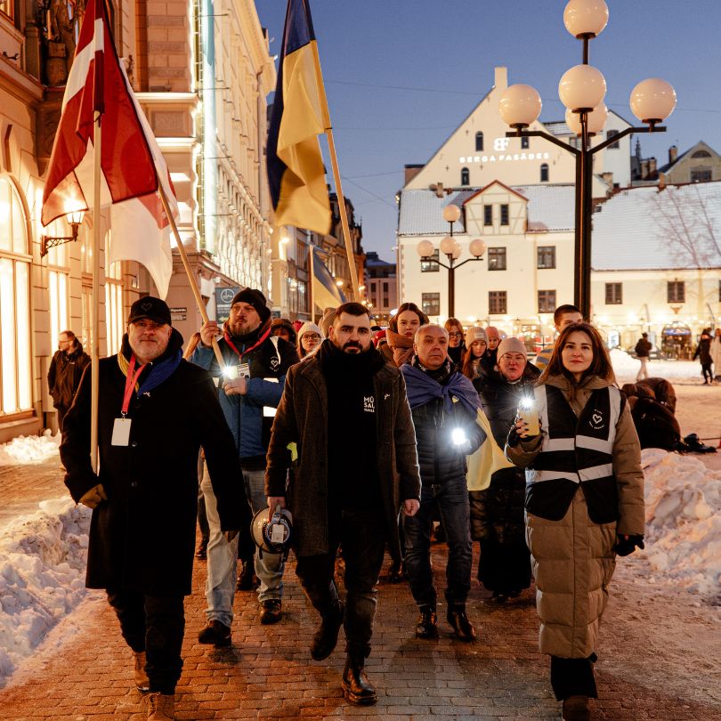 - plkst. 19.00 – “Gaismas ceļa Ukrainai” atklāšana ar simboliskām Ukrainas vēstniecības Latvijā un “Tavi draugi” uzrunām,
